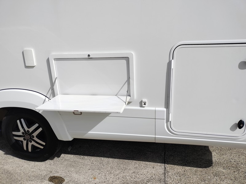 2019 Fiat Ducato chassis with turbo diesel, automatic transmission, nudge bar, rear suspension air bags, solar panels, reversing camera, tow bar, separate shower and toilet, rear island bed, electric awning, electric step, gas hot water, ducted heating, roof mounted reverse cycle air conditioning, front swivel seats, 3x gas burner stove with grill and oven, microwave, 2-door 175L 3-way fridge/freezer, lots of storage and wall cabinetry, outside drop down picnic table, gas bayonet, rear tunnel boot storage. Travelled 109,000 kms. Can be driven on car licence. CONSIGNMENT STOCK has no Statutory Warranty or cooling off period. $128,600+orc, $134,990 Drive Away.