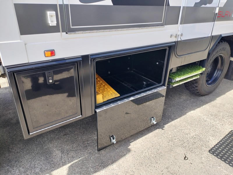 Features include: Isuzu NPS 75/155 4×4, 5.2L turbo diesel, automatic transmission, 280L fuel tanks, 300L freshwater tanks, 17,500lb front winch, roof crane, reversing camera, electric awning, electric entry step, shower/toilet, diesel hot water system, 6x200w solar panels, 2x400amp Mastervolt Lithium batteries, 2×3,500w Mastervolt inverters, rear single beds, washing machine, induction cooker, roof mounted reverse cycle air conditioning, diesel heater, Gen3 Starlink high speed internet, 32” flatscreen TV, side-by-side 250L 12v fridge/freezer, external BBQ, seats 2, sleeps 2 and comes with much, much more! This motorhome is superbly built and has only travelled 10,500 kms. LR licence. CONSIGNMENT STOCK has no Statutory Warranty or cooling off period. $368,900 Plus on Road Costs, $380,990 Drive Away