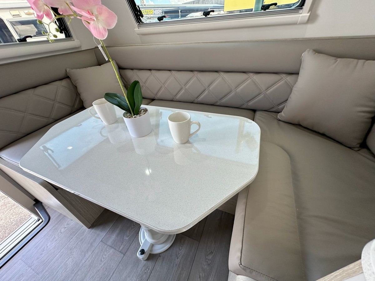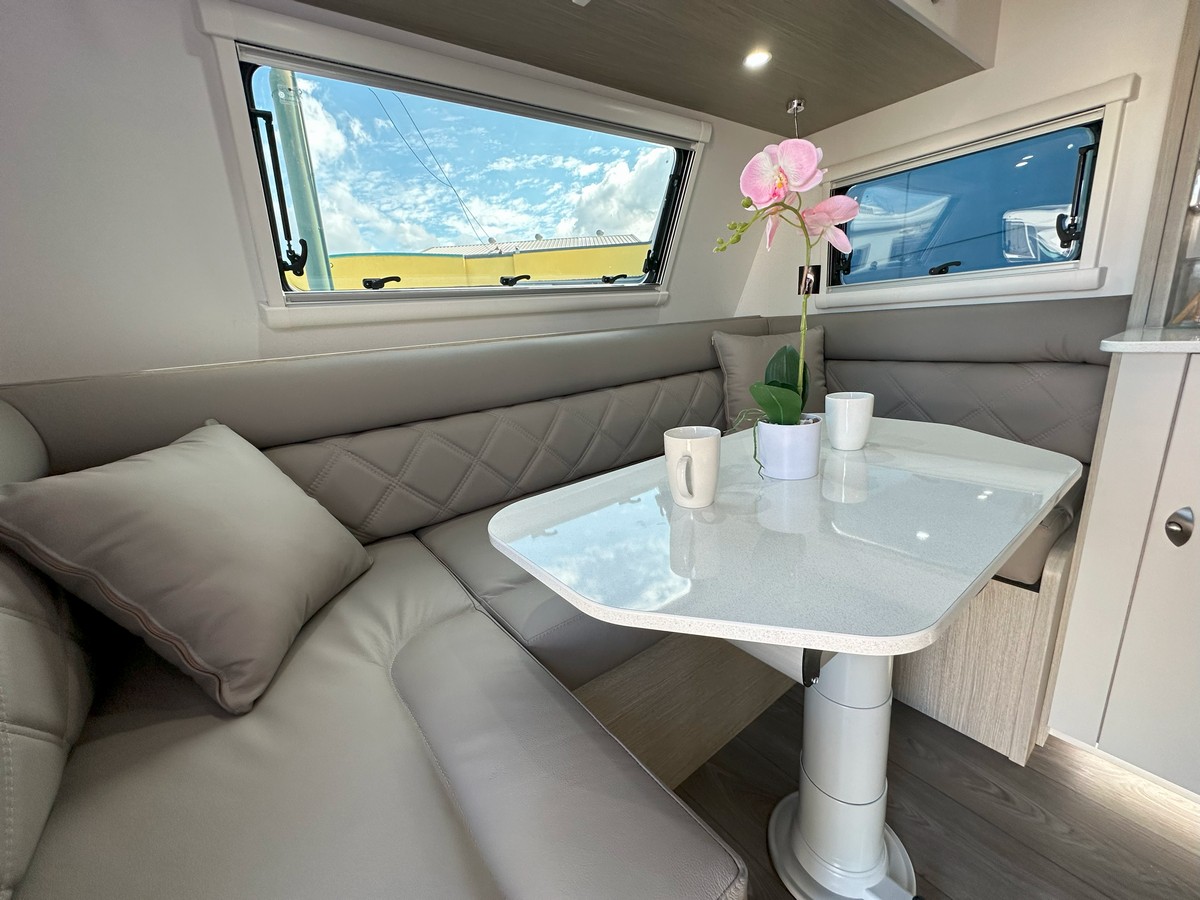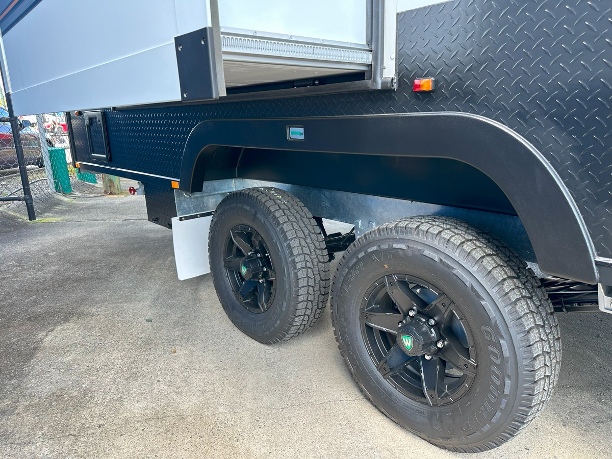 The Ironbark has a long list of features to ensure your trip is all about the leisure.Modern and Contemporary Style Furniture * Leather Seat Coverings. Thetford Fridge 170 Litres 12vI240v * Reverse Cycle Roof Top Air Conditioner * Microwave * Rangehood with 12v Twin Fans and Lighting * 24″ LED TV * TV Antenna * Washing Machine. * 6″ Fully Hot Dipped Galvanised Chassis * 6″ Reinforced Cross Members * Electric Drum Brakes * AL-KO EnduroX Suspension. Single 200-watt Solar Panels and Regulator * 100AH Deep Cycle Battery. Twin 95 Litre Water Tanks with Guard Protection * 20 Litre Hot Water System with Dual Operation Gas/240v * Dual 9kg Gas Bottles * Gas Bayonet Connection. Instaltuff Hail-Resistant One-Piece Composite Panels for Roof/Sides/Rear * One-Piece Honeycomb Floor * AL-KO Off Road Coupler * Roll-Out Awning * Picnic Table * External Entertainment Hatch. AUSTRALIAN MADE. * Tare 2437kg * Ball Weight 220kg * ATM 3200kg $109,990.00 Tow Away